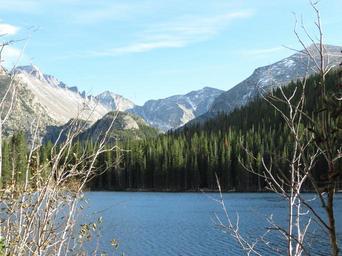 Keywords: bear lake snow capped mountain blue sky colorado rocky mountains landscape wilderness scenery natural wild outdoor environment scenic land nature tranquil