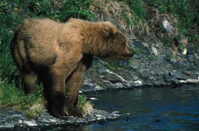 Keywords: bear water standing profile wildlife nature predator looking portrait wilderness brown fur stream river creek