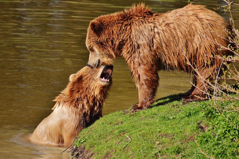 Keywords: bear wildpark poing play water brown bear wild animal dangerous fur nature forest animal animal world wildlife park
