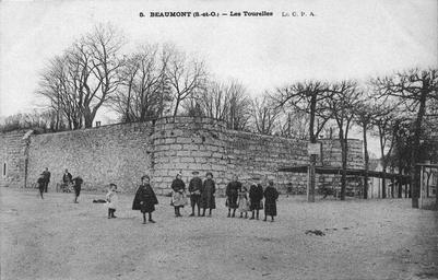| Keywords: Beaumont tourelles.jpg Château de Beaumont-sur-Oise Val-d'Oise vers 1900 lorsque le département de Seine-et-Oise S -et-O existait encore De gauche à droite on observe un bout du donjon un tronçon de boulevard d'artillerie une première tourelle une portion de courtine et une deuxième tourelle La base du donjon des tourelles etc est enterrée / Beaumont-sur-Oise castle in the Val-d'Oise department c 1900 at the time the town was part of the former Seine-et-Oise department From left to right one can see part of the stone keep a section of an earth bulwark and two turrets linked by a curtain wall The original base level of the keep and towers lies several metres underneath the ground level Carte postale ancienne / Vintage postcard Début du XXe siècle / Early 20th century C P A Domaine public / Public domain Aucune / None PD-old Curtain walls fortification Château de Beaumont-sur-Oise Postcards of Val-d'Oise |