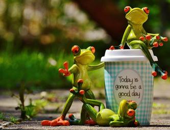 Keywords: beautiful day joy frog coffee cup happy happiness start joy of life life is beautiful cute emotion funny good mood keep smiling cheerful beginning sweet pep talk smile laugh courage positive day frogs
