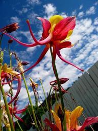 Keywords: beautiful flowers blue sky clouds plant nature bloom garden yellow red