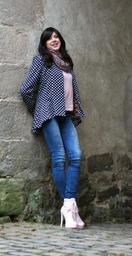 Keywords: beautiful pose nature model young women joy of life brunette makeup lips light healthy human high heels ankle boots pink jeans