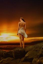 Keywords: beautiful sunset woman back view body silhouette alone seashore