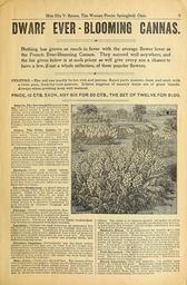 | Keywords: Beautify your homes (15729916493).jpg Miss Ella V Baines The Woman Florist Springfield Ohio <br> DWARF EVER ˘ BLOOMING GANNAS <br> <br> Nothing has grown so much in favor with the average flower lover as <br> the French Ever Blooming Cannas They succeed well anywhere and <br> the list given below is at such prices as will give every one a chance to <br> have a few if not a whole collection of these popular flowers <br> <br> CULTUHE The soil can hardly be too rich and porous Equal parts manure loam and sand with <br> a little peat form the best mixture Liberal supplies of manure water are of great benefit <br> Always when growing keep well watered <br> PRICE 10 CTS EACH ANY SIX FOR 50 GTS THE SET OF TWELVE FOR 1 00 <br> Austria The New Giant Flowered Catt- <br> ÂŤa- It is in truth a giant with tiowerssix to <br> eight inches across a giant iu its superb <br> growth young plants set out in June form- <br> ing dense spreading clumps with twenty to <br> twenty-five stems six feet high and every <br> stem surmounted with a spike of its glorious <br> golden lily-like flowers a giant in its grand <br> foliage a magnificent giant in its every attri- <br> bute <br> Alsace Ttte White Canua -In this <br> variety we have the nearest approach to a <br> pure white Canna A wonderfully free <br> bloomer and a fine erect grower The flow- <br> ers at first opening are a light sulphur yellow <br> changing to creamy white A grand variety <br> for contrasting with darker colored sorts <br> Alpbouse Bouvier This is the grandest <br> of all Cannas for outdoor bedding It is a <br> very luxuriant grower in good ground It <br> begins to bloom very early and is one con- <br> tinuous mass of crimson the entire season <br> The tips of the shoots are surrounded by im- <br> mense clusters of bright crimson flowers of <br> the very largest size and nothing can excel <br> their brilliancy <br> Burbauk Color rich canary yellow <br> with a few carmine spots in throat Giant <br> orchid-like flowers the upper petals measur- <br> ing fully seven inches across It is a vigor- <br> ous growing plant attaining a height of five <br> to six feet with leaves of a leathery texture <br> shiny and very large <br> Charles Henderson A grand variety of <br> a fine crimson color that has become very <br> popular While it is not quite as rich in <br> color as Alphonse Bouvier its habit of <br> growth is much more compact rarely ex- <br> ceeding three and one-half feet in height <br> which makes it a desirable companion to <br> such varieties as Florence Vaughan and <br> Madame Crozy <br> Chicago Grand; vermilion-scarlet flow- <br> ers very Targe and flat petals broad and five <br> in number composing a magnificent flower <br> in a very large truss erect in growth foliage <br> a bright green The heavy texture of the bloom renders them <br> very durable as compared with most varieties <br> Egandale Without the least hesitation we pronounce this <br> the Dest of all dark-leaved Cannas for bedding that has yet <br> come under our notice Flowers are of good size and borne in <br> compact heads and in such profusion that a bed of them is a <br> perfect mass of color unequaled by any other sort The color <br> is a deep currant-red of a peculiar and pleasing shade and <br> different from any other <br> Florence Vaughan Undoubtedly one the finest yellow <br> spotted varieties yet sent out; in color it is of a bright rich <br> golden-yellow spotted with bright red; the flowers which are of <br> the largest size of great substance and of perfect form are borne <br> in large heads and in the greatest profusion; the foliage is mass <br> ive and of a rich green color; the plants are from three and <br> one-half to four feet in height <br> Mine Crozy Three and one-half feet The flowers of this <br> well known and very popular variety are of a dazzling crimson- <br> scarlet bordered with bright golden yellow and produced in <br> the greatest profusion on large branching stems the entire <br> summer in large trusses set well above the foliage It can be <br> had in bloom the year round and is admirably adapted to pot <br> culture The plant is of vigorous growth yet rather dwarf in <br> habit the foliage is of a rich cheerful green and very massive <br> A remarkably free bloomer and all things considered still one <br> of the best for bedding purposes <br> Maiden's Blush -It is pronounced by experts pure soft <br> pink an indescribable tint of dav dawn loveliness entirely <br> different from all others Evervonesays it is one of the sweetest <br> and most lovely shades ever seen It is an immense bloomer <br> and bears splendid trusses of exquisite lily like flowers contin- <br> uously all through the Summer and Fall till killed down by <br> frost It is a neat compact grower with handsome foliage and <br> one of the best kinds for bedding; can also be grown nicely in <br> pots or boxes The only variety of its color yet introduced <br> Paul Marquard The individual flowers are large and the <br> flower spike verv large each flower standing out separately by <br> itself The flower is as fine as the finest Orchid The color is a <br> bright salmon with a carmine tint <br> Queen Charlotte New and beautiful A perfect sym- <br> phony of crimson and gold Magnificent large flowers of the <br> most perfect form rich scarlet crimson distinct golden band <br> around each petal Verv large trusses of bloom nine to ten <br> inches in height from fifty to sixty buds and flowers on a <br> single truss flowers nearly five inches across 41878698 131125 64689 Page 9 Text http //www biodiversitylibrary org/page/41878698 1918 10 1080/00222939708680643 Ella V Baines Firm ; Henry G Gilbert Nursery and Seed Trade Catalog Collection NameFound Canua NameConfirmed Canua NameBankID 267589 NameFound Orchid Biodiversity Heritage Library Beautify your homes 1901 Garden Stories Bulbs Plants Catalogs Flowers Plants Ornamental Roses Seed industry and trade Seeds Trade catalogs U S