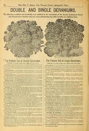 | Keywords: Beautify your homes (16162289058).jpg 14 Miss Ella V Baines The Woman Florist Springfield Ohio <br> DOUBLE AND SINGLE GERANIUMS <br> The following wonderful new Geraniums were exhibited at the convention of the Society of American Florists <br> and attracted more attention and were more admired than any other novelties on exhibition there <br> GERANIUM ROSEBUD <br> r The Premier Set of Double Geraniums <br> PRICE 8 cents each; any eight for 50 cents <br> Centaur The new mammoth Centaur Double Geranium is <br> the best large flowering double pins Geranium in cultivation <br> Any one seeing a'specinien truss cannot fail to become enthus- <br> iastic over it pronouncing it the largest and finest Geranium in <br> cultivation <br> Clara Kisker Large trusses of well expanded flowers of a <br> bright scarlet toned and flamed with a rosy salmon and a flow- <br> er of most expressive appearance and one that will be much ad- <br> mired by all <br> Beauty Poitevi tie Very large semi-double flowers borne on <br> immense trusses free bloomer either as a pot plant eras a bed- <br> der It has no equal of the color which is a brilliant salmon <br> very clear on the borders This might well have been called <br> ' Salmon Brnani ' as it is identical in every way but color <br> White Swan In whiteSwan we have one of the finest dou- <br> ble white Geraniums ever introduced and unlike other double <br> white Geraniums it is suitable for bedding and flowers as pro- <br> fusely as the best single varieties They are borne in large truss- <br> es and are spotless snowy white retaining their pure whiteness <br> even in the heat of Summer <br> Bruant Color of the flower is a light vermilion red of a most <br> pleasing shade The flowers are absolutely perfeetinshape con- <br> tour and makeup; trusses exceptionally large and borne in <br> immense spherical balls often measuring eight inchesm diame- <br> ter it does finely in the open ground and is perfectly reliable <br> as a bedding Geranium of the highest merit <br> Tour Eiffel Color bright orange scarlet somewhat in the <br> way of the variety Bruant it is a strong vigorous grower mak- <br> ing a distinct place for itself in us class Semi-double <br> Gertrude Color of the flower a clear bright salmon with <br> center and outer edges touched with while and with soft shadings <br> of carmine velvety in texture and of the most beautiful semi- <br> double form I have measured trusses of bloom on this variety <br> ten inches in diameter It is simply superb A fine bedder <br> Crimson Velvet This is the darkest and richest Geranium <br> grown It is very bright dark deep rich velvety maroon <br> very dark and rich and at the same lime very bright An excel- <br> lent bedder and pot plant One that must find its way into every <br> collection Simply superb <br> Rose Bud As double as a Tuberose and the only Geranium <br> in the world that makes beautiful buds It is truly a wonder in <br> the Geranium family <br> Sir Walter Scott Color beautiful vinous rose with distinct <br> white center Produces line individual florets <br> Fire Brand Color dazzling flame scarlet fine prominent <br> truss flowers large and of great substance An excellent bed- <br> der and pot plant <br> Emile de Girardiu Of a deep soft rose rather than pink <br> but fresh and bright The blossoms are perlect in form and <br> borne well and clear above the foliage The long beds of it seen <br> in the Chicago parks with edgings of ’ ’ Gulden Bedder Colens <br> formed the most beautiful Geranium planting I have ever Seen <br> and the combination is delightful <br> SPECIAL OFFER The Premier Set of Double Geraniums <br> for only 80 cents <br> GERANIUM BLANCHE MOULAS <br> The Premier Set of Single Geraniums <br> PRICE 8 cents each; any eight for 50 cents <br> John Good Truss of enormous size and quite globular in <br> form stem long and rigid A grand improvement on Lady <br> Koseberry color being a clear salmon lightly edged with white <br> Beauty of Richmond Intense orange scarlet very dazzling <br> with large w hue eye flower perfectly circular and of immense <br> size Foliage lightly zoned A seedling from Beautv of Kent <br> Extremely fine <br> Gettysburg Bright crimson maroon of beautiful shade <br> flower very large and of fine form An extra beautiful dark va- <br> riety <br> Monsieur Poinsiguou The color is bright aurora rose <br> shaded salmon with a white eye Large trusses of splendid <br> shaped flowers <br> Bill Nve Color peach shading to pale salmon flower of fine <br> size and form A splendid grower of nice compact habit <br> M Noury A most pleasing lavender rose color very chaste <br> and beautiful with distinct marking ofwhite in center of flower <br> Dwarf and so free in bloom as to literally cover the plant <br> General Grant One of the best bedding Geraniums in cul- <br> tivation Grows freely and blooms with the greatest profusion <br> Brilliant scarlet flowers One of the very best for massing <br> Mrs F G Hill A most distinct and pleasingshade of salmon <br> with light shading in center The shading at the center is va- <br> riable however Trusses are very large and composed of im- <br> mense numbers of florets <br> Madame Alfred Mame A magnificent beddingvariety The <br> trusses are of extraordinary size the florets by actual measure- <br> ment being two and one-half inches long by two inches wide of <br> almost Pansy form The color is a soft sub-scarlet lower petals <br> shad ing to salmon in the center which lsdeeply veined crimson <br> Marguerite deLayres A grand single white plantsa mass <br> of while blooms trusses of the grandest size florets extra large <br> and of the purest white The plant is robust Grand for pots or <br> bedding It is by far the best single white <br> Lansdowne A soft deep scarlet florets large and round and <br> formed into large trusses borne with the greatest freedom <br> An ideal bedder producing a mass of soft brilliant color well <br> above the foli