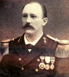 Keywords: Beck, JAH. Kapitein luitenant ter Zee eerste klasse. Atjeh medaille, onder Binkes.jpg en Luitenant ter zee Beck Eigen Haard nvt 1897 PD-old-100 Military people of the Netherlands