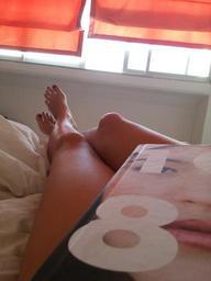 Keywords: bed book long legs reading girl bedding