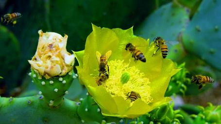 Keywords: bee bees nature cactus desert dessert spring summer yellow flower cactus flower bumblebee