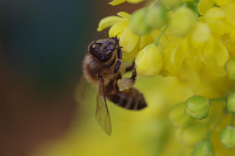 Keywords: bee blossom bloom yellow spring close flowers macro