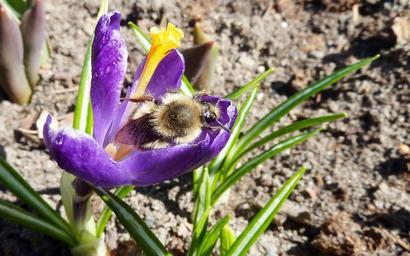 Keywords: bee crocus nectar purple insect bumble nature blossom animal floral flower garden