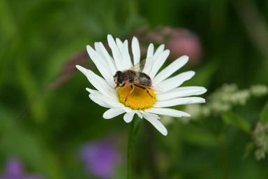 Keywords: bee daisy flower nature insect macro close blossom white green summer honey