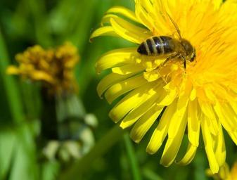 Keywords: bee dandelion season flower insect spring nature background
