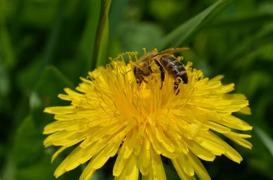 Keywords: bee dandelion spring flowers macro nature plant