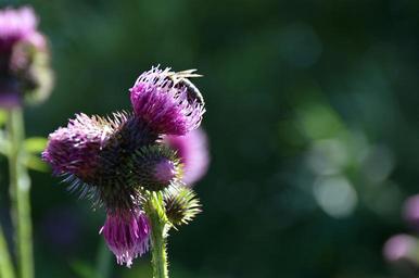 Keywords: bee diestel close insect honey nature thistle bud pollination blossom bloom flora grass meadow environmental protection