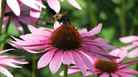 Keywords: bee flower echinacea pollination beauty nature summer close-up