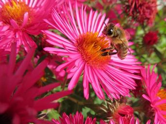 Keywords: bee herbstaster autumn honey bee aster flower violet insect blossom bloom purple close nature bloom color flora plant macro pollen honeybee pollination animal asteraceae ornamental plant colorful nature conservation