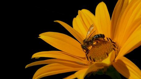 Keywords: bee honey bee bee on yellow flower bee and flower bee on flower released insect pollination close