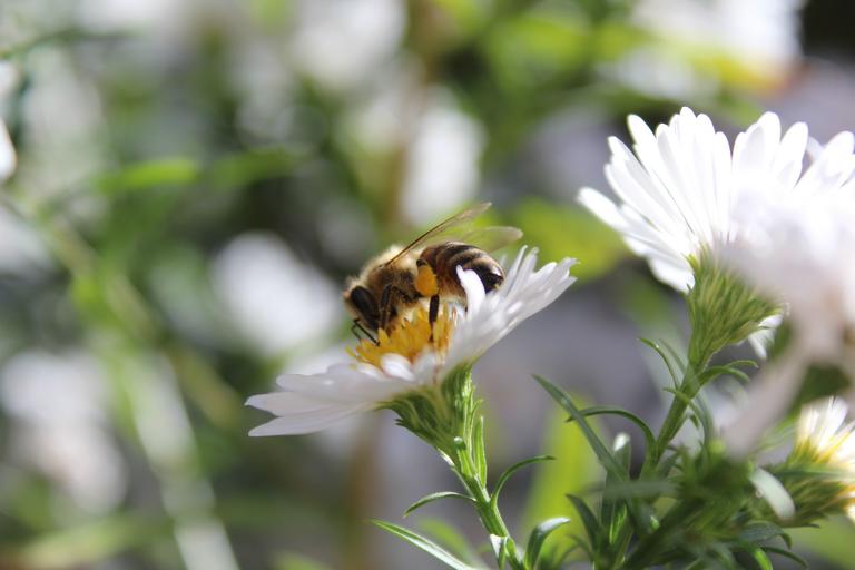Keywords: bee insect animal plant white flowers close honey bee nature summer