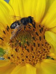 Keywords: bee nectar insect honey pollen sunflower yellow pollinate busy collect spring flower pollinator honeybee