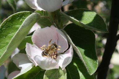Keywords: bee quince blossom bloom fruit tree quince flower