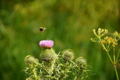Keywords: bee thistle nature insect plant flowers violet close flora thistle flower flower pollination summer park field pasture
