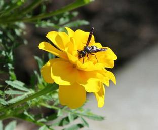 Keywords: bee wasp hornet flower marigold wing fly bumblebee pollen jacket antenna buzz sting worker flight