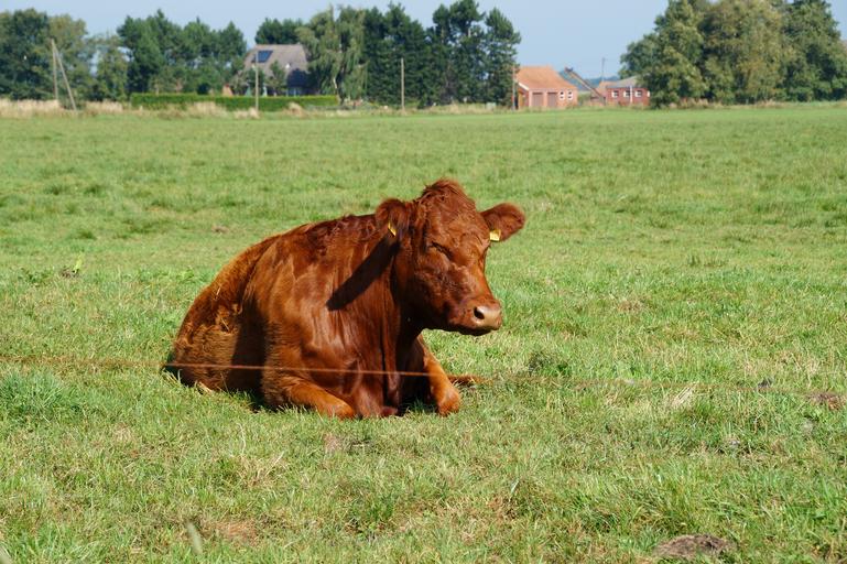 Keywords: beef animal brown cow sleep ruminant cans landscape