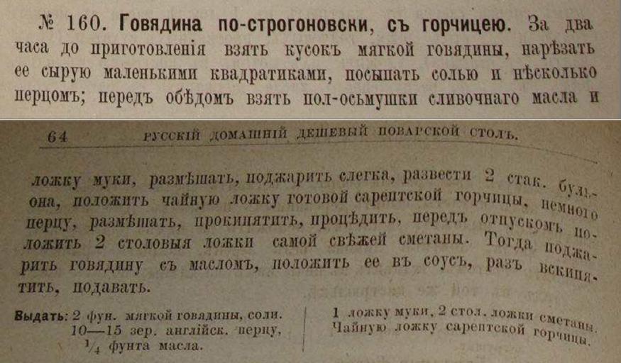 | Keywords: Beef Stroganoff 1884.png  ru Рецепт бефст оганова Скан из книги ст 63-64 1883-1884 Ян Гу вич и Елена Ретц  астольная пова ская книга для всех хозяек  осква издательство Земского 1883-1884 Ян Гу вич и Елена Ретц other versions PD-RusEmpire Beef Stroganoff Recipes Scanned Russian texts |