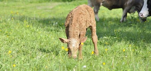 Keywords: beef young animal animal livestock cattle calf meadow grass pasture eat mammal