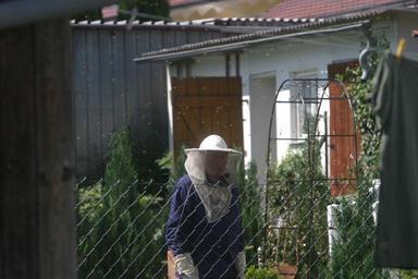 Keywords: beekeeper bees garden honey bees bee keeping honey combs hive beehive bee breeding man human person hobby work leisure
