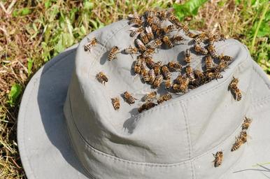Keywords: bees insect close honey bees apis bee in the approach hat swarm