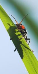 Keywords: beetle macro insect plant orange red crawl green close nature
