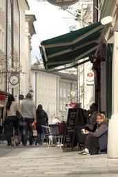 Keywords: begging beggar woman poverty shopping pedestrian zone patch stroll consumption city