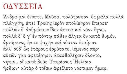 | Keywords: Beginning Odyssey.svg inkscape Die 9 Anfangsverse der Odyssee von Homer The 9 first verses of Odyssey by Homer Los 9 primerosd versos de la Odisea de Homero Les 9 premiers vers de l Odyssée d Homère I primi 9 versi dell Odissea di Omero Пе вые 9 стихов Одиссеи Гоме а Own work using Wikisource for text 2007-04-07 User Bibi Saint-Pol <gallery> Image Beginning Iliad svg Beginning of the Iliad </gallery> Text pages Odyssey Greek language Odyssey Book 1 | ||||