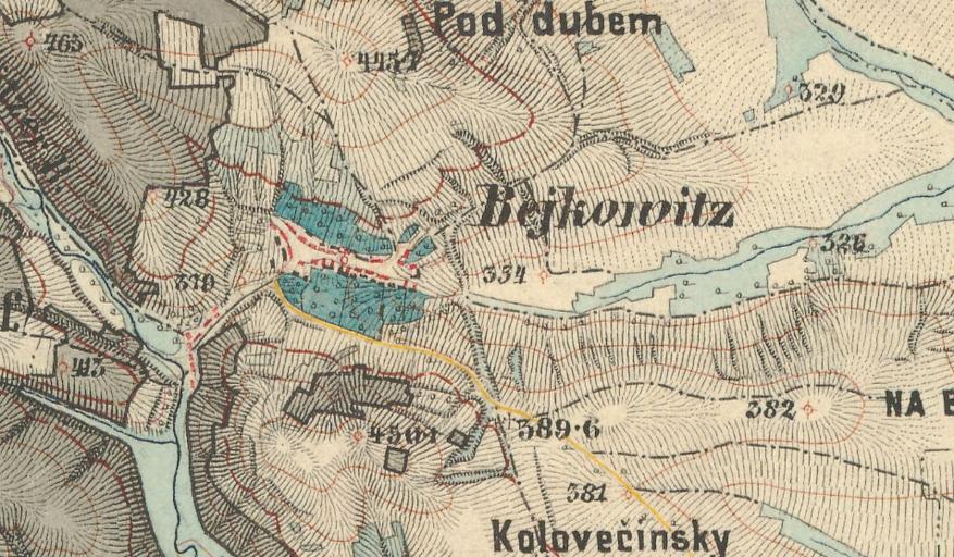 Keywords: Bejkovice 1876.png cs Morava III vojenské mapování 1876 own Laboratoř geoinformatiky Univerzity J E Purkyně v Ústí nad Labem 2005 © Laboratoř geoinformatiky Univerzita J E Purkyně Býkovice