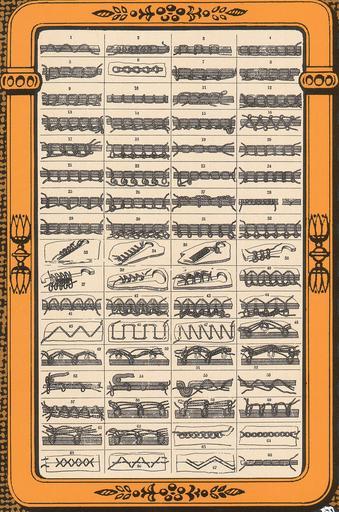 | Keywords: Bekannte Sticharten (Nähen) im Jahr 1882 - Sewing stitches.jpg Aus Knight's American Merchanical Dictionary Vo 3 p 2122 die im Jahre 1882 nachstehend aufgeführten 68 Sticharten die durch Hand oder Maschine ausgeführt wurden <sup>Sekundärquelle 100 Jahre Strobel 1883-1983 Selbstverlag Buchdeckel Text Innendeckel </sup> Thingle thread 1 Running stitch 2 Back stitch 3 Fast stitch 4 Chainstitch 5 Coiled-loop chainstitch 6 Knitted-loop chainstitch 7 Knotted-loop chainstitch 8 Loop enchained by second alternate stitch 9 Each loop locks and enchains alternate stitch 10 Staple stitch for waxed threads only Two threads 11 Double-needle chainstitch 12 Double-thread chainstitch one needle 13 Double-looped chainstitch 14 Chain with interlocking thread 15 Under-thread through its own loop 16 Two needles penetrate fabric from opposite sides 17 Two needles working from the same side 18 Double interlocking loop 19 Lockstitch 20 Twist in needle thread 21 Double twist in needle thread 22 Twist in shuttle thread 23 Double twist in shuttle thread 24 Knot stitch shuttle thread knotted at every stitch 25 Knot stitch shuttle thread knotted at every other stitch 26 Knot stitch shuttle thread through the needle thread loop and knotted around the loop 27 Shuttle thread pulled to the surface and interlocked with succeeding stitch to form an embroidery stitch 28 Wire-lock stitch thread locked in place with wire Three threads 29 Two shuttles each locking alternate loops 30 Double loop with interlocking third thread 31 Two shuttle threads both locking each loop 32 Two shuttle threads interwining and locking each loop 33 Single thread; loop of needle thread drown up over the edge and locked by needle thread drawn up over the egde and locked by needle at its next descent 34 Two threads; loops of needle thread above and below extend to the edge and of the fabric and are locked by shuttle thread 35 Two threads; needle penetrates back from edge its loops passed to and interlocked by the needle at its next descent over the edge and this second needle-loop locked the shuttle thread 36 Two threads; shuttle thread drawn up over the edge of the fabric to the line of the needle thread 37 Two threads; needle loop through the fabric locked by needle loop over the edge and second loop locked by second thread 38 Two threads; edge of fabric covered by shuttle thread 39 Three threads; third thread laid around the stitch at the edge of the fabric Ornamental stitches 40 Zigzag single thread chainstitch 4 41 Zigzag two-thread lockstitch 19 42 Zigzag two-thread stainstitch 13 43 Zigzag chain stitch with interlocking thread 14 44 Zigzag double loop with interlocking third thread 30 45 Zigzag running stitch 1 46 Zigzag two needles and shuttle 47 Zigzag variation of 46 48-52 Zigzag stitches for sewing straw braid 53-62 Straight straw-braid stitches 63-67 Special embroidery stitches 68 Saddler's stitch Dazu ist in dem Werk der Firma Strobel vermerkt hintere Umschlagseite Die auf den Umschlagseiten aufgezeigten Stichtypen werden bis 1983 von der Firma J Strobel Söhne GmbH Co KG angewandt a Stichtyp 101; DIN 61400 Kl 530 Einfaden-Kettenstich b Stichtyp 103; DIN 61400 Kl 45 58 170 Einfaden-Kettenstich-Blindstich c Stichtyp 105; DIN 61400 Kl 120 Einfaden-Kettenstich-Doppelblindstich d Stichtyp 306 DIN 61400 Kl 274 u 339-L Doppelsteppstich-Blindstich f Stichtyp Kl 325 Doppelsteppstich-Blindstich g Ohne Stichtyp Kl 340 Doppelsteppstich-Doppelblindstich h Ohne Stichtyp Kl 226 Doppelsteppstich-Blindstich i Stichtyp 501; DIN 61400 Kl 141 Einfaden-à berwendlichstich k Stichtyp 502; DIN61400 142er Kl Zweifaden-à berwendlichkettenstich l Stichtyp 409; ISO/DIS 4915 Entwurf Doppelkettenstich-Blindstich Kl 280-30 m Ohne Stichtyp; mit Intervall 1 2 ISO/DIS 4915 Doppelkettenstich-Blindstich Kl 284 n Ohne Stichtyp; mit Intervall 1 3 ISO/DIS 4915 Doppelkettenstich-Blindstich Kl 284 Collection Kuhn 1882 / 1983 author PD-old Sewing stitches |
