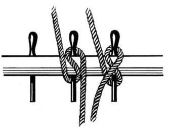 Keywords: Belaying Pin (PSF).jpg Line art drawing of belaying pins and pin rail Zeichnung von Belegnägel und Nagelbank Dessin Râtelier avec trois cabillots Tekening Korvijnagels en spreilat Belaying pins