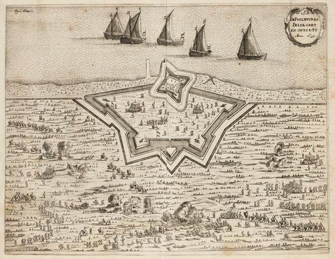 | Keywords: Beleg en ontzet van de schans Philippines - Siege and relieve of the fort Philippines in 1635.jpg en Depiction of the siege and relieve of the fort Phillipines in 1635 nl De Philippines Beleegert en Ontsett Anno 1635 Fredrick Hendrick van Nassauw Prince van Orangien zyn leven en Bedryf Legermuseum Delft Signature 00102288/013 Jacob Braat printer Gerrit Nieuwenhuysen and the widow of Esdras Willemsz Snellaert publishers 1652 PD-old-100 Siege by Frederick Henry 1635 Philippine Conflicts in 1635 Eighty Years' War in Zeeland Prints in the Legermuseum Delft |