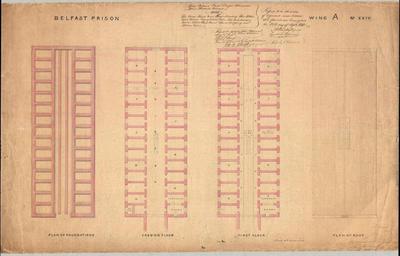 | Keywords: Collection: Antrim Crown and Peace -- Belfast Bridewell Records Date: c.1842 Original Format: Plan Plan of the Floors in A Wing, Belfast Gaol/Crumlin Road Prison -- drawn by Charles Lanyon PRONI Ref: ANT/4/11/25 Copying and copyright: Please see www.proni.gov.uk/index/research_and_records_held/copying_... For Copy Orders, contact: Email: proni@dcalni.gov.uk Collection: Antrim Crown and Peace -- Belfast Bridewell Records Date: c.1842 Original Format: Plan Plan of the Floors in A Wing, Belfast Gaol/Crumlin Road Prison -- drawn by Charles Lanyon PRONI Ref: ANT/4/11/25 Copying and copyright: Please see www.proni.gov.uk/index/research_and_records_held/copying_... For Copy Orders, contact: Email: proni@dcalni.gov.uk |