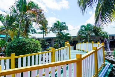 Keywords: belize port tropical bridge walkway palm trees landscape carribean british harbor