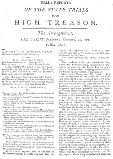 Keywords: BellTreasonTrials.png Bell's account of the 1794 Treason Trials Eighteenth Century Collections Online 1794 Bell Author has been dead for over 70 years PD-old-100 Popular prints from England Georgian era Trials 1794