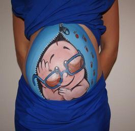 Keywords: bellypaint belly painting pregnant baby zipper belly boy glasses blue