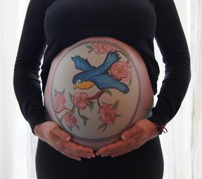 Keywords: bellypaint belly painting pregnant baby animals bird flowers pink pregnant photo orgineel