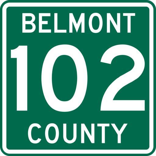 Keywords: Belmont County Route 102 OH.svg Route marker for Belmont CR 102 in Ohio own 2012-03-25 Fredddie Diagrams of route markers of Belmont County Ohio Diagrams of county route markers with county name 0102 102 number