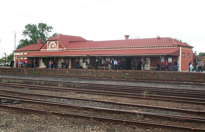 Keywords: 36 33S 145 59E Benalla railway station is located on the North East line in Victoria, Australia. It serves the town of Benalla. Opened 18 August 1873. attribution: Marcus Wong