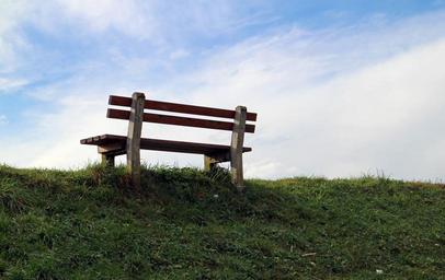 Keywords: bench bank seat click rest nature out sky earth meadow height overview hill ray of hope view