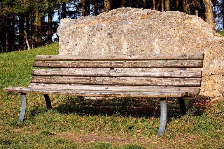 Keywords: bench bank seat nature out resting place rest sit click forest wood recovery wooden bench idyllic