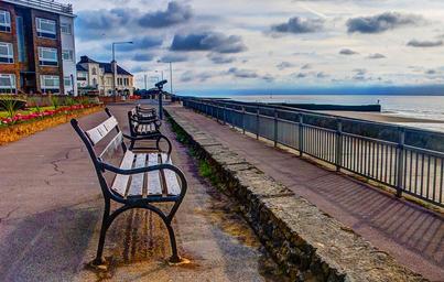 Keywords: bench coast sea sky beach sitting coastline shore walton on the naze essex england uk