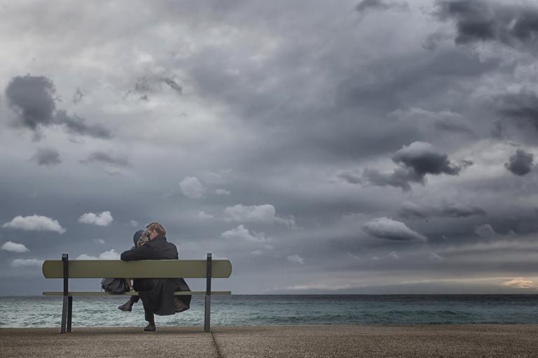 Keywords: bench sea beach marseille clouds love seaside maritime ocean coast south of france mother child childhood waves